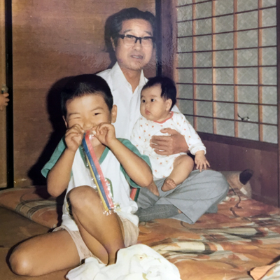 尊敬するのは祖父。祖父は電気治療院を開業していました。小さい頃、爺さんと婆さんが大好きで、いつも爺さんの治療室に遊びに行っていました。 「今は勉強なんてしなくていい、大人になれば”ここで勉強しなくては!“という時が必ずくるから、その時にいっぱい脳みそに汗をかいて勉強すればいい。今あわてて勉強なんかせんでいい。今のうちにより多くの友達を作りなさい。」